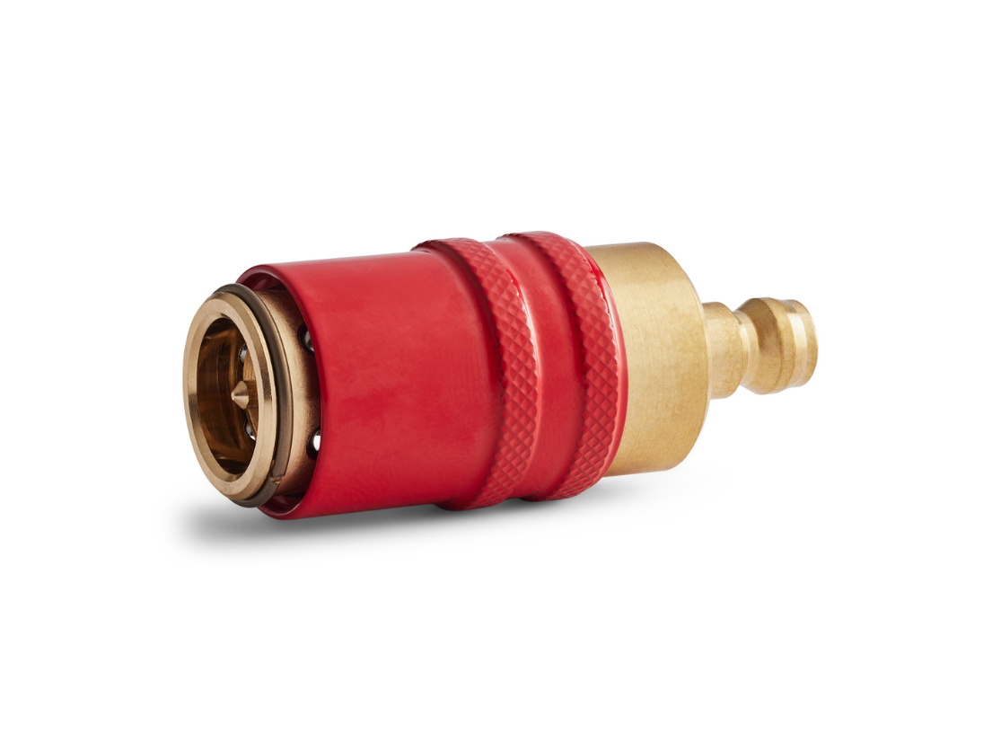 Dyros-Adapterkupplung Serie 90 mit Nippel für Serie 6 mit Ventil mit roter Hülse