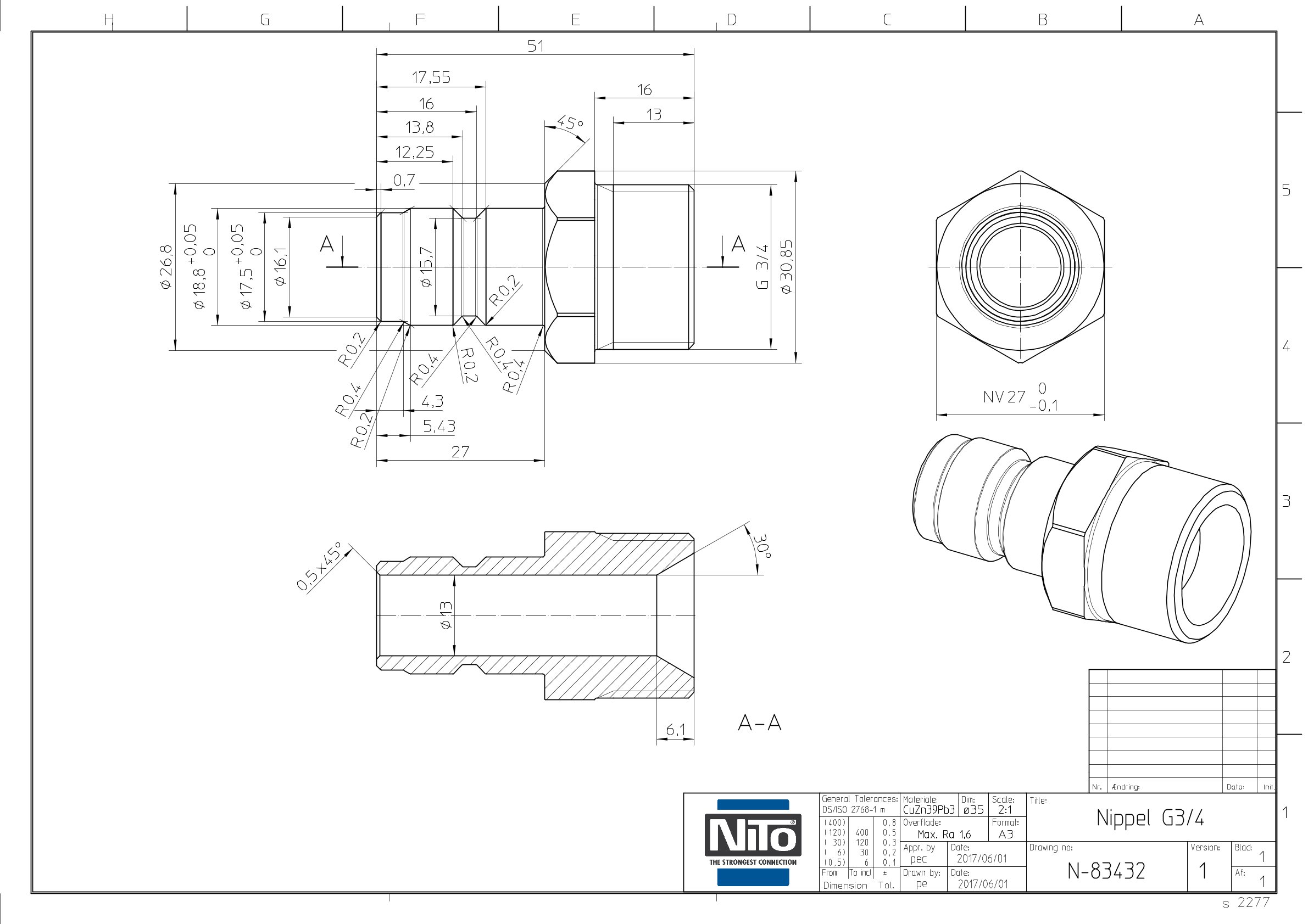 Dyros Kupplungsnippel Serie 80 mit AG G3/4″