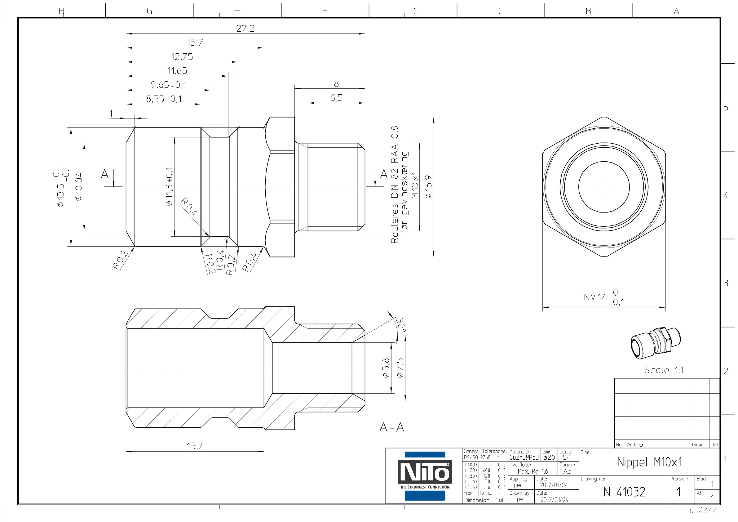 Dyros Kupplungsnippel Serie 40 mit AG M10x1