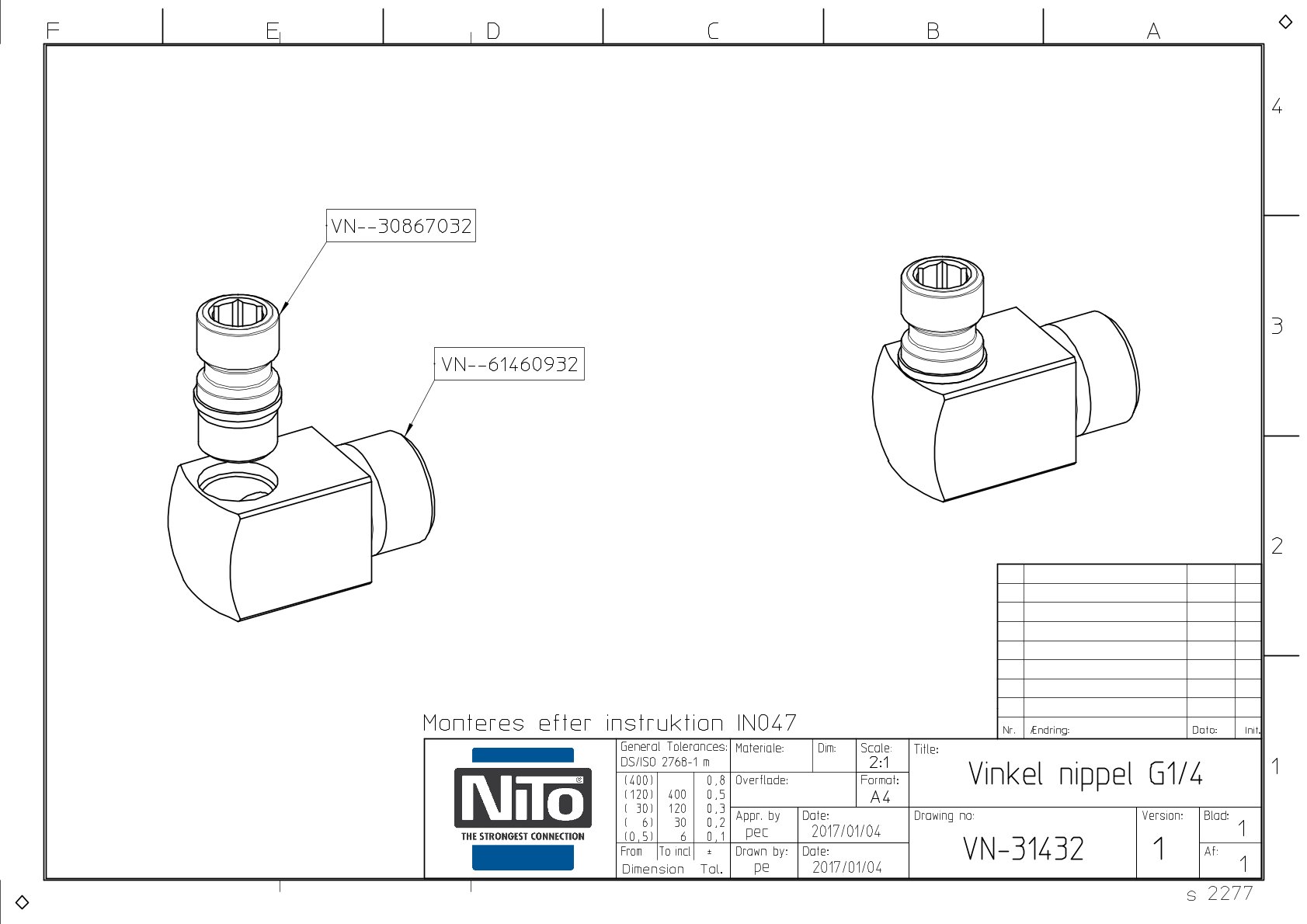 90° Dyros Kupplungsnippel Serie 30 mit AG G1/4″