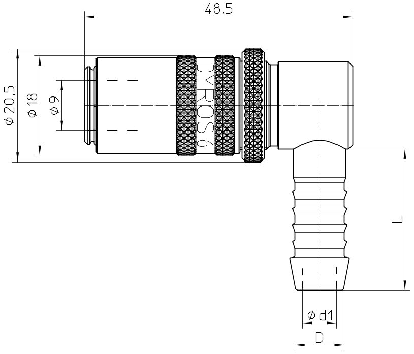 Dyros Serie 6 Sicherheitskupplung mit 3/8″ Schlauchanschluss orange 90°